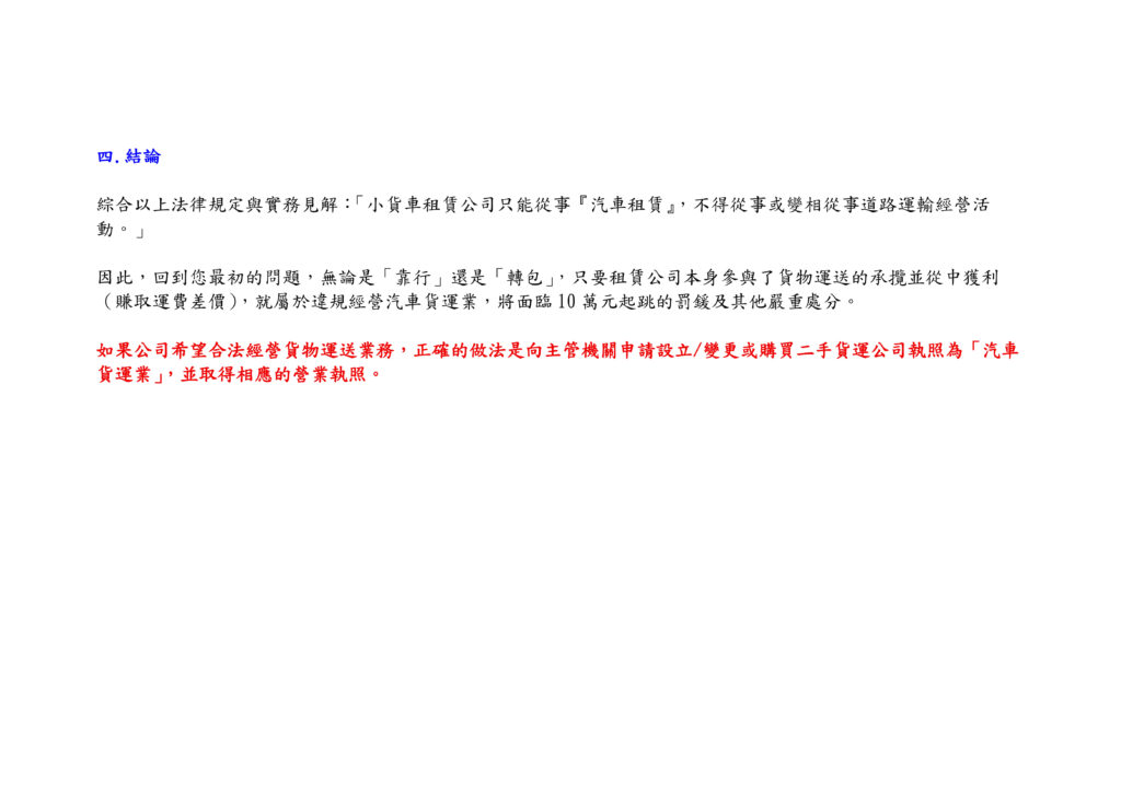 為新公司也現金高價收購欲讓出經營權的貨運公司!前提是乾淨能提供:公司核准函/變更登記表/公司章程/運輸執照/公會證書/三年財報/無欠稅證明/聯徵報告!評估可以三天內付頭期款!