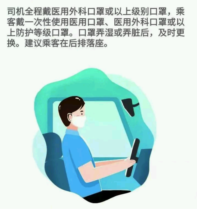 上车前,主动向司机出示本人有效健康码、行程卡,自觉扫码登记,请全程规范佩戴口罩,后排乘车(不建议前排就座)。避免使用现金支付,实行扫码、转账等线上支付方式,全程不与司机接触。