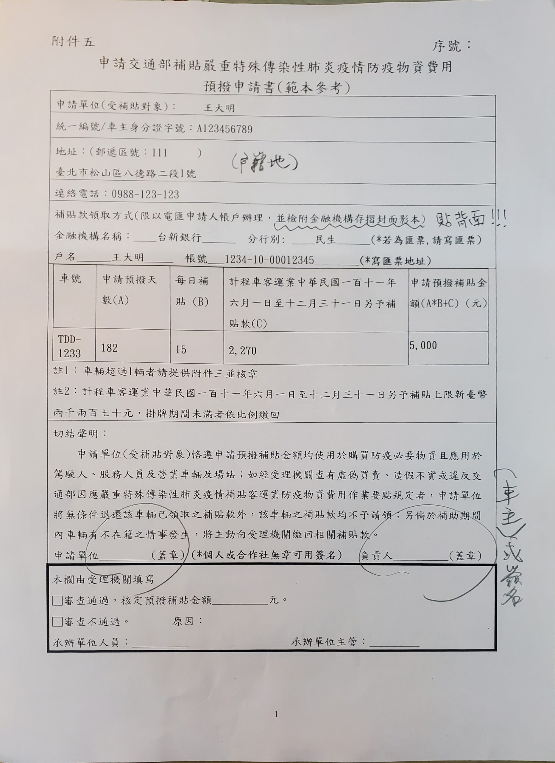 計程車防疫物資補貼申請書範例及申請表格下載
